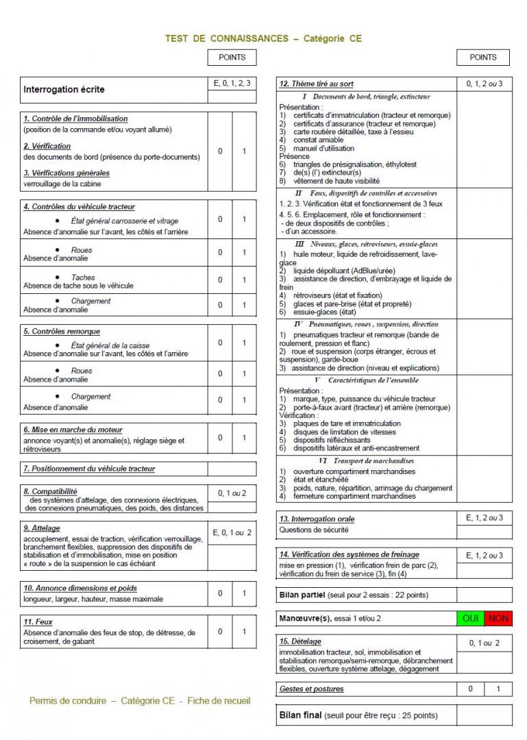 - d'une vérification courante de sécurité (Permis CE : incluant attelage)